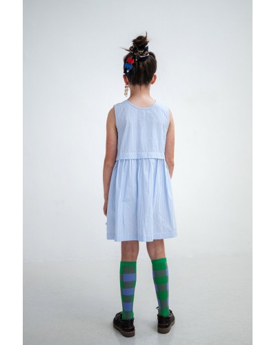 Short dress by Repose Ams with fine stripes in woven organic cotton