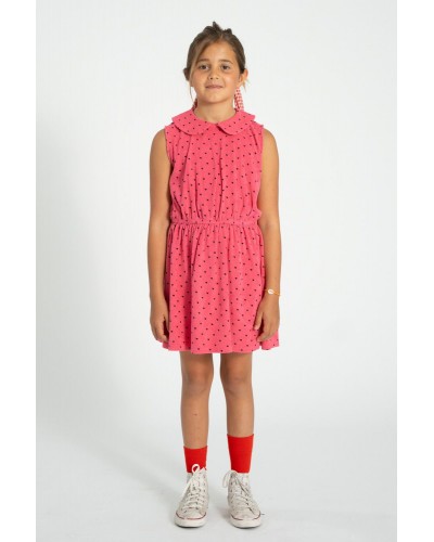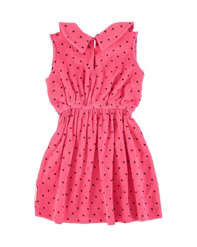 Pink dress in organic terry cotton with a small heart allover print.
