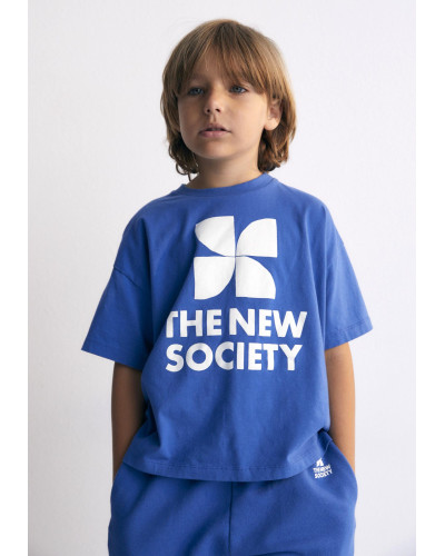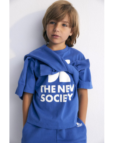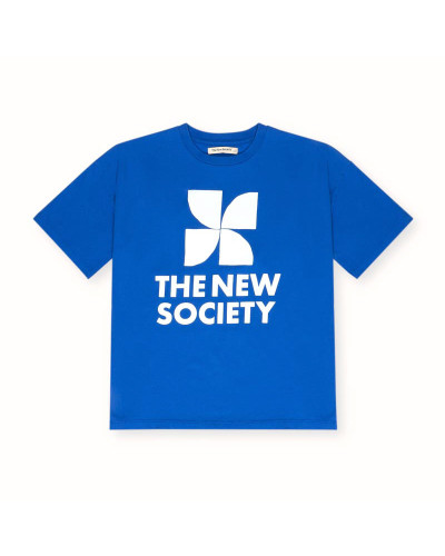 cobalt blue T-shirt with logo print and short sleeves by The New Society