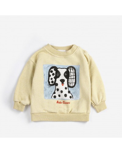 yellow sweatshirt with dog print from the baby collection 'PICKLES' by bobo choses.