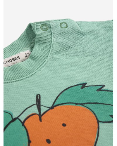 green sweatshirt with tangerine print from the baby collection 'PICKLES' by bobo choses.