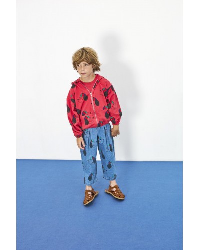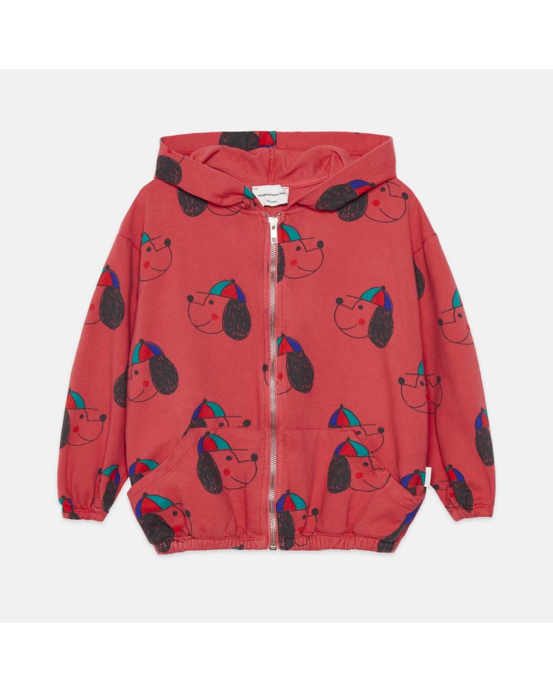 red hooded sweatshirt with zip and dog print by Weekend House Kids from 'the art of seeing', a collection full of color and fun.