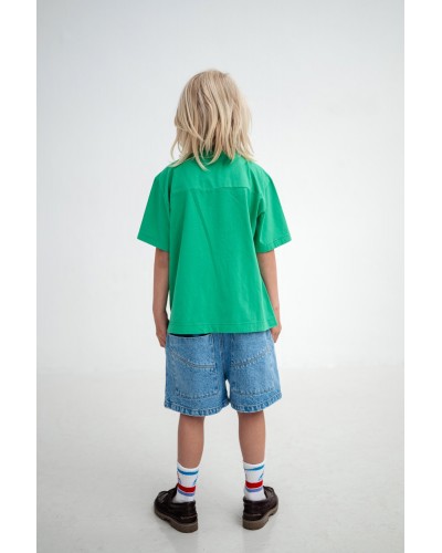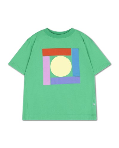 jade green t-shirt with geometric print and short sleeves in organic cotton by Repose AMS