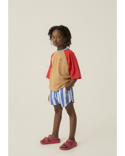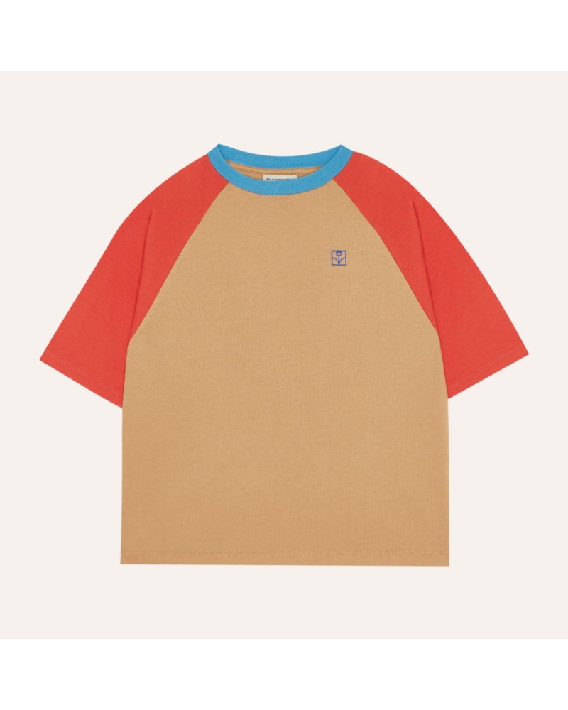 red and brown color block T-shirt with short sleeves by The Campamento