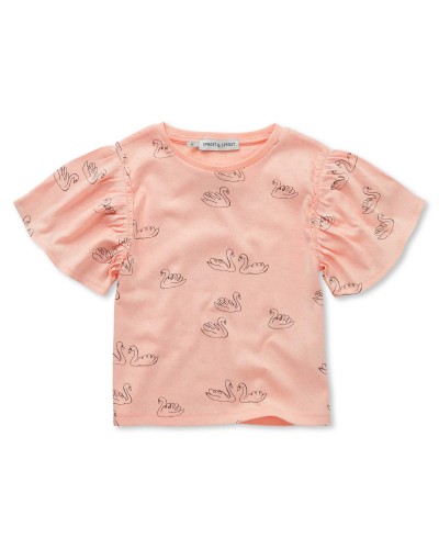pink swan T-shirt with short sleeves in organic cotton by Sproet & Sprout