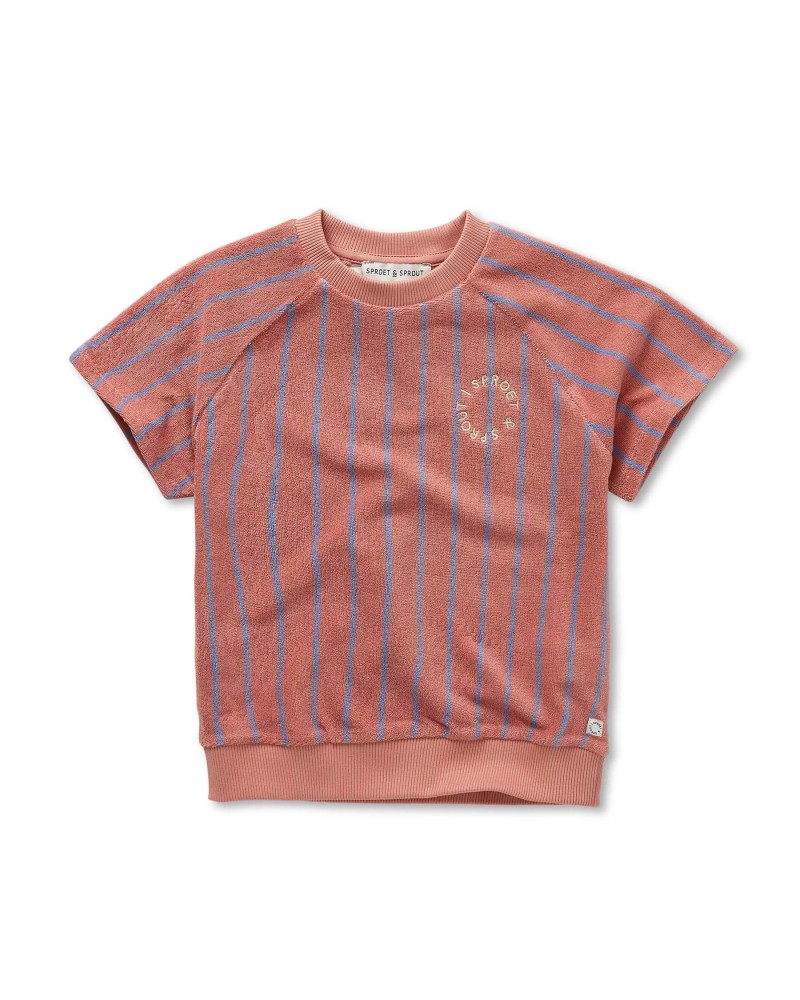 Rose down sweat top with short sleeves and blue stripes in organic cotton by Sproet & Sprout