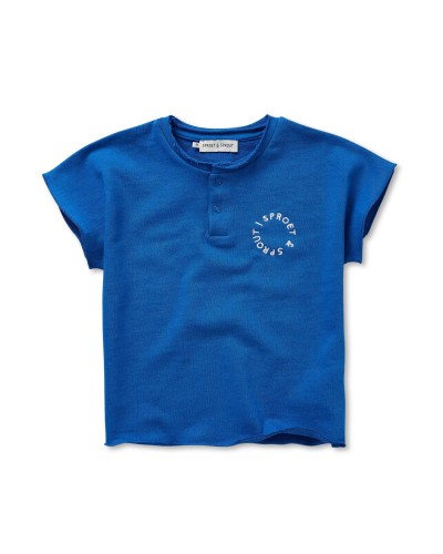 blue sweat top with short sleeves and buttons in organic cotton by Sproet & Sprout