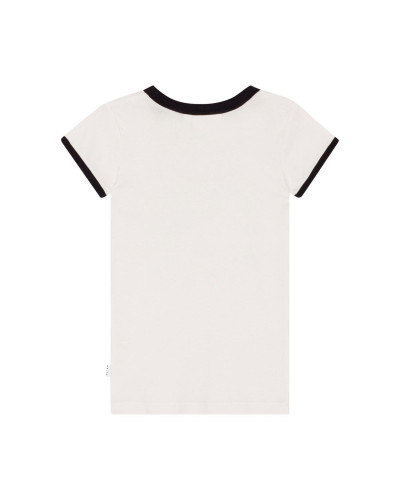 Off-white t-shirt called Rhiannon, which is clearly vintage-inspired with black edges and a placement print on the front