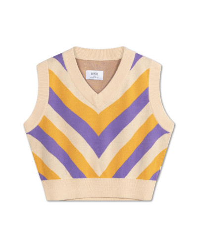 Knitted spencer with retro diagonal stripes.