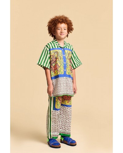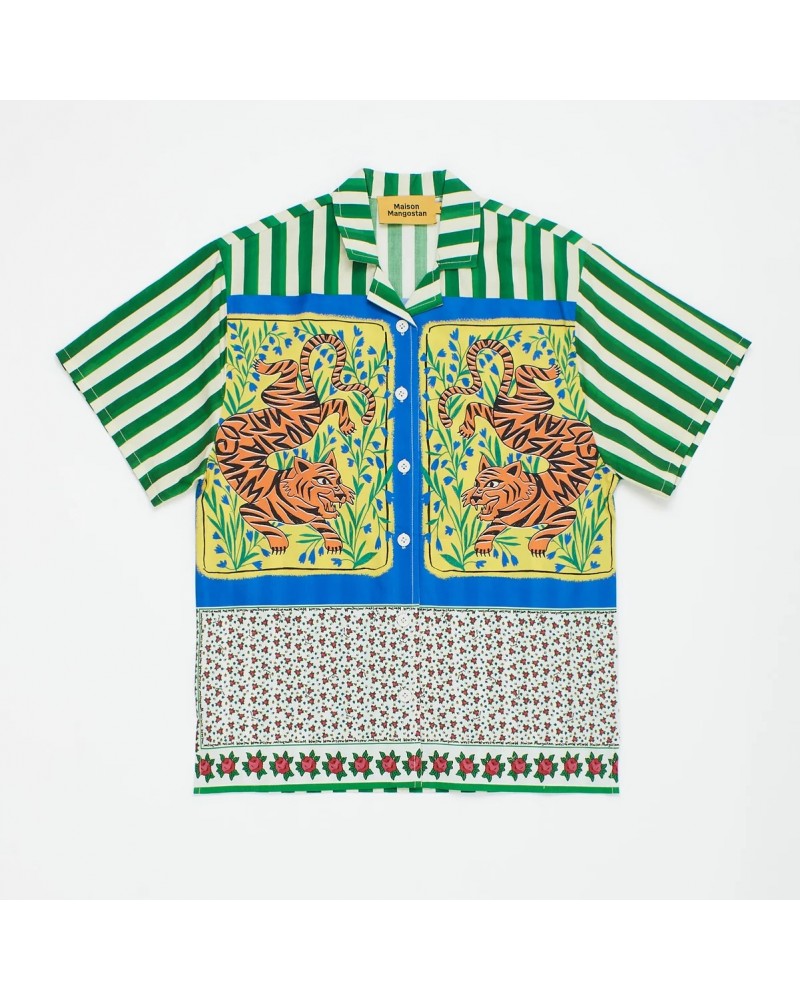 tiger patchwork shirt with short sleeves by Maison Mangostan