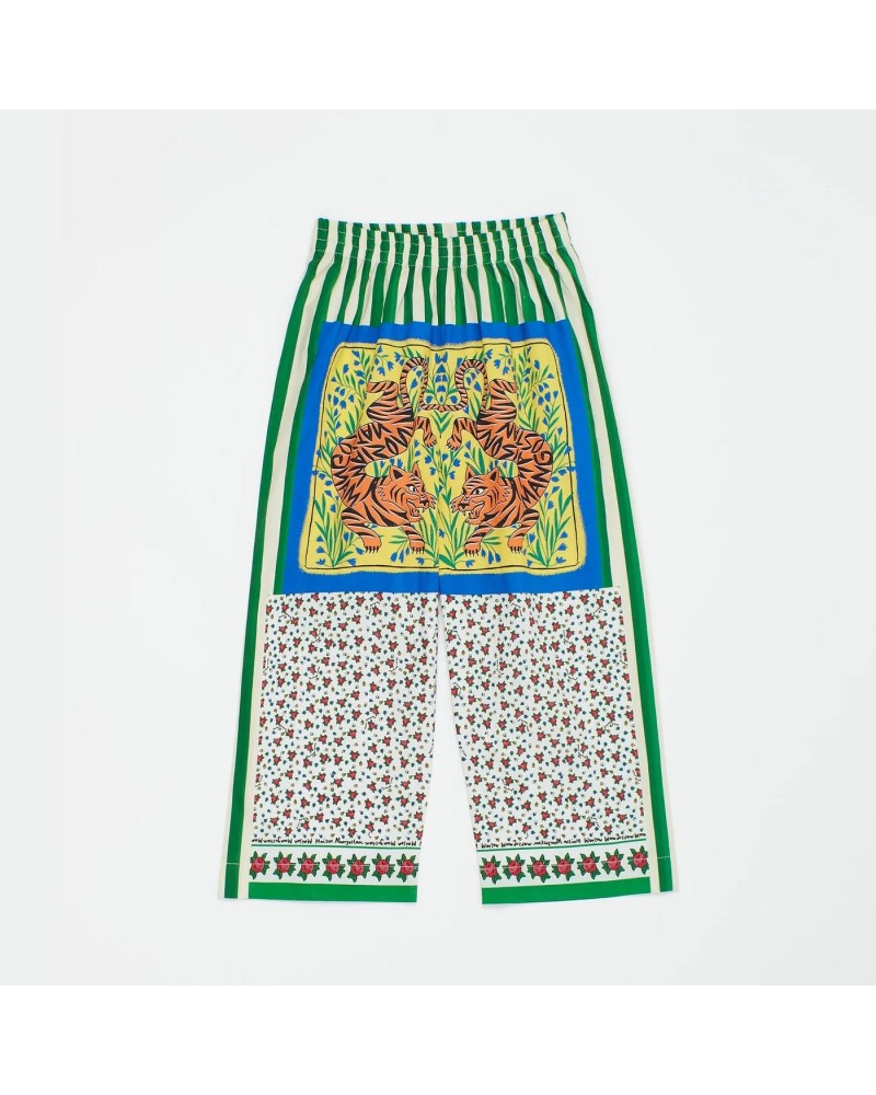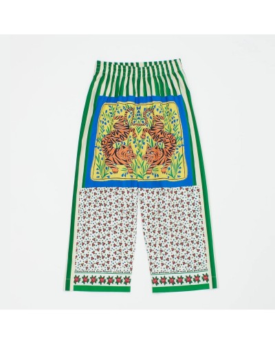 tiger patchwork trousers in woven cotton by Maison Mangostan