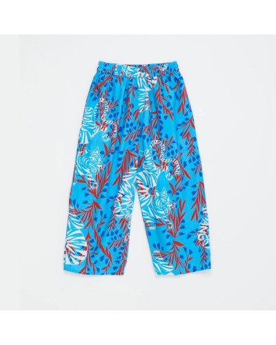 Beautiful blue pants with wildlife and tiger print in woven cotton.