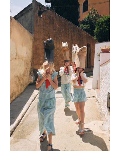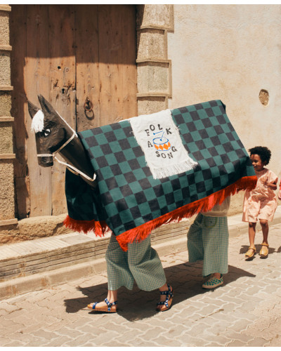 Deze collectie 'A Folk Song' is geïnspireerd op volksfestivals waar kinderen en volwassenen zich op straat verzamelen tussen muzikanten, verhalenvertellers, dansers en mythische wezens uit de folklore om de cultuur en het leven te vieren.