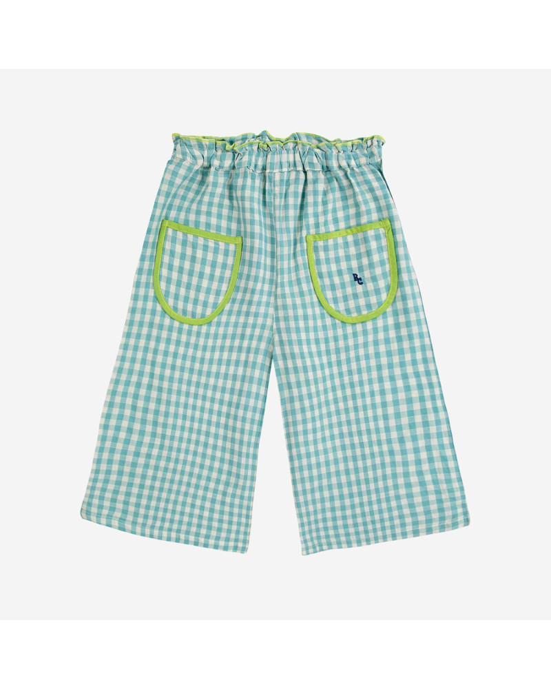 Azuurgroene vichy culotte broek van popeline katoen en linnen