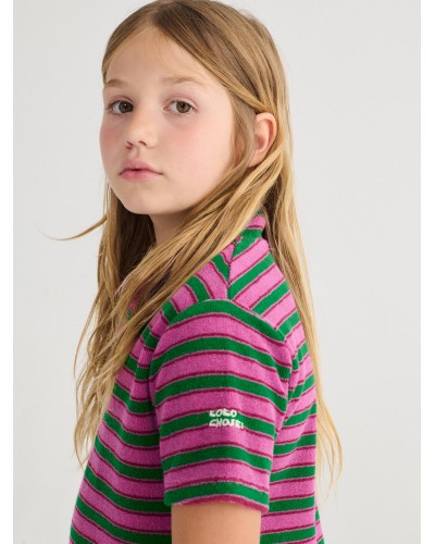 Badstof polo jurk met groene en paarse strepen uit de collectie 'PICKLES' van bobo choses.