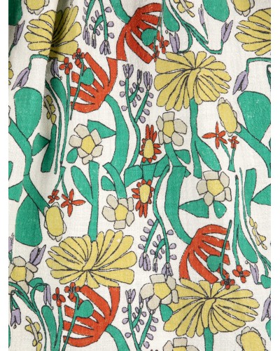 Jurk van biologisch geweven katoen met print van zomerse kruiden en bloemen.