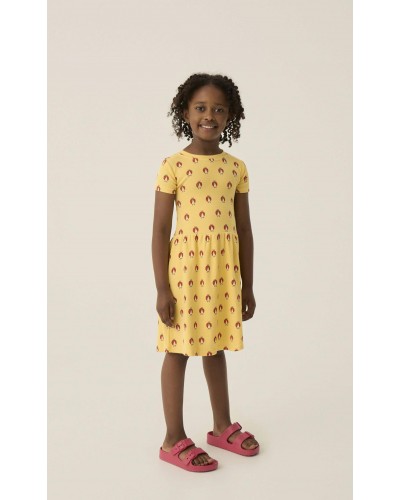 gele jersey jurk met lieveheersbeestjes print van The Campamento