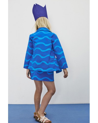 blauwe golfjes overgooier in geweven biokatoen van Weekend House Kids uit 'the art of seeing', een collectie vol kleur en fun.
