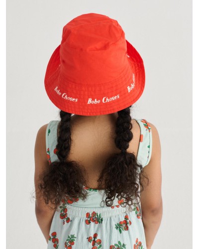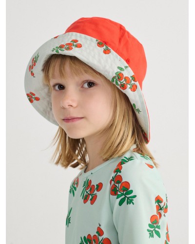 omkeerbaar katoenen hoedje in rood met kerstomaatjes uit de collectie 'PICKLES' van bobo choses.