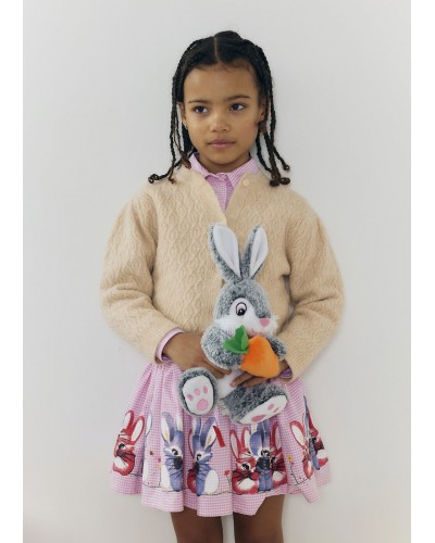 kort roos geruit kleedje met konijntjes van Morley for kids - Belgische mode.