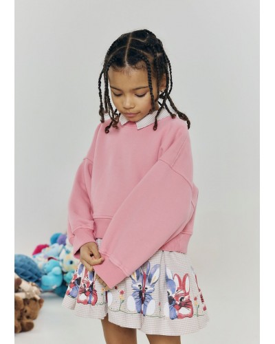 kort beige geruit kleedje met konijntjes van Morley for kids - Belgische mode.