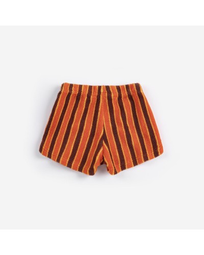 badstof short met bruine en oranje strepen uit de baby en peuter collectie 'PICKLES' van bobo choses.