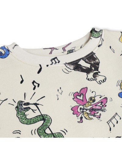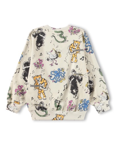 Monti sweatshirt met alloverprint van dieren die rockmuziek spelen.