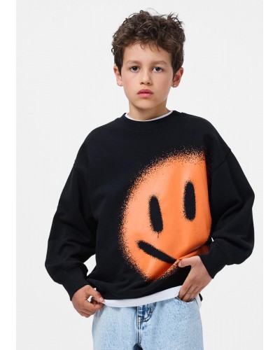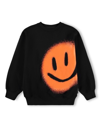 zwarte sweater trui met grote oranje smiley print van MOLO.