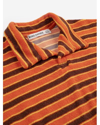 Badstof polo met bruine, oranje en gele strepen uit de collectie 'PICKLES' van bobo choses.