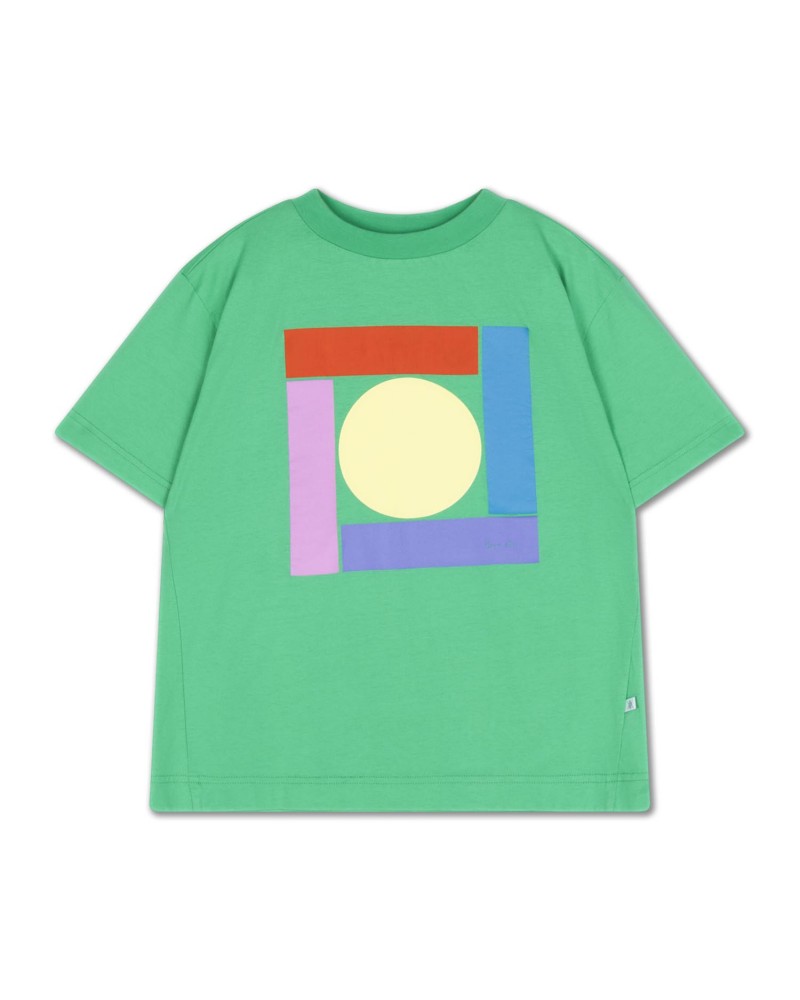 Jadegroen T-shirt met geometrische print op de voorzijde.