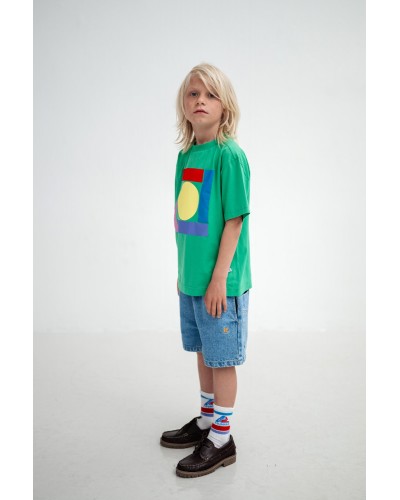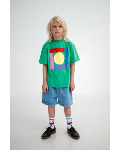 groene t-shirt met geometrische print en korte mouwen in biokatoen van Repose AMS
