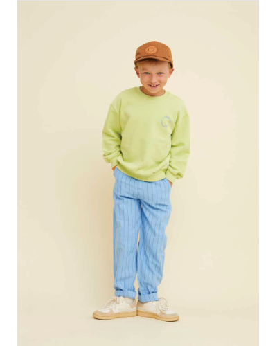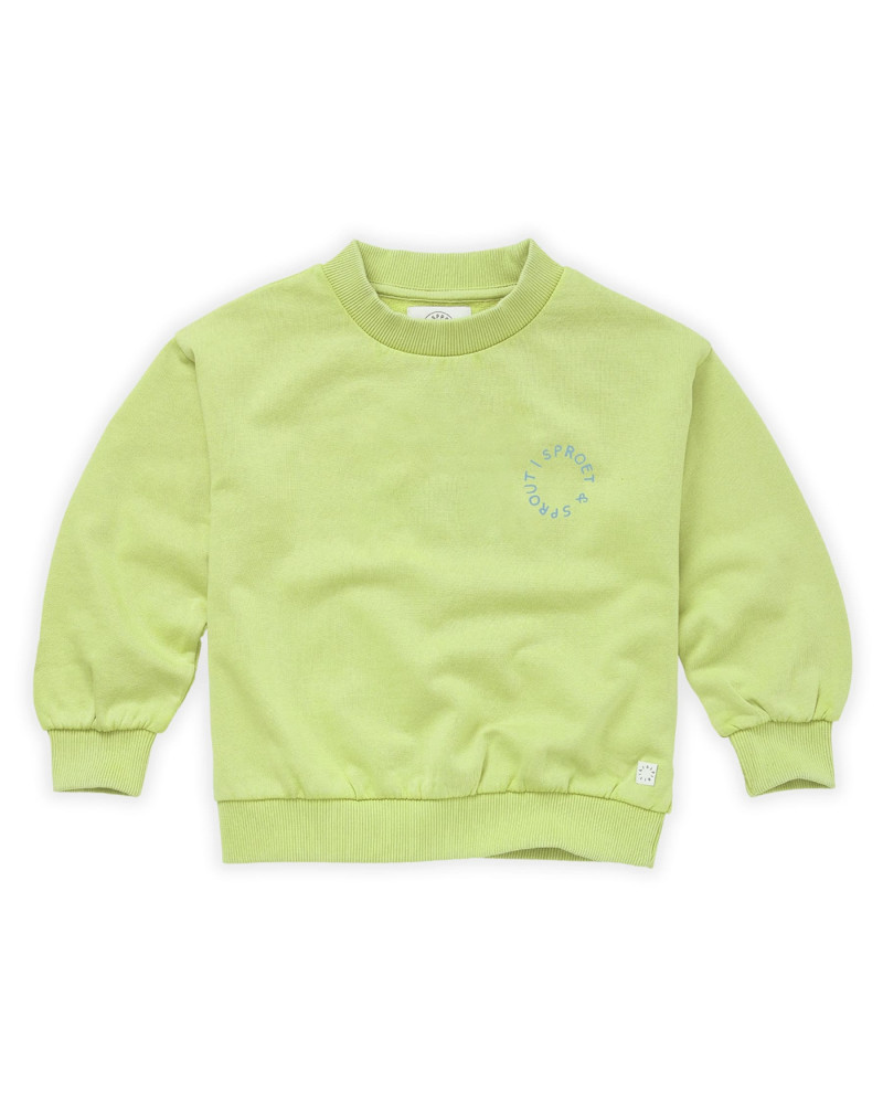 geelgroene sweater trui in biokatoen met logo van Sproet & Sprout