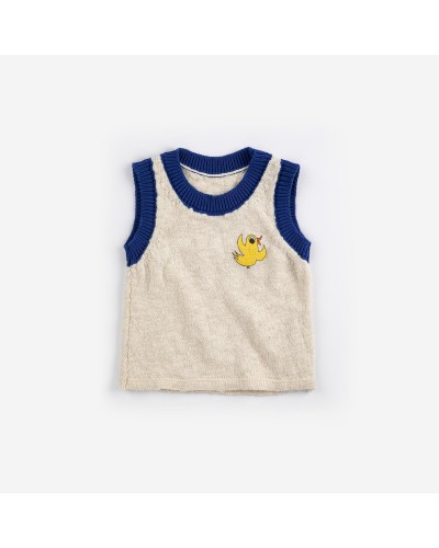 gebreide tank top met vogel uit de baby en peuter collectie 'PICKLES' van bobo choses.