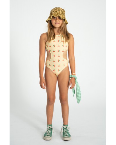 geel badpak met kersenprint uit de collectie 'FIRST LOVE' van Piupiuchick